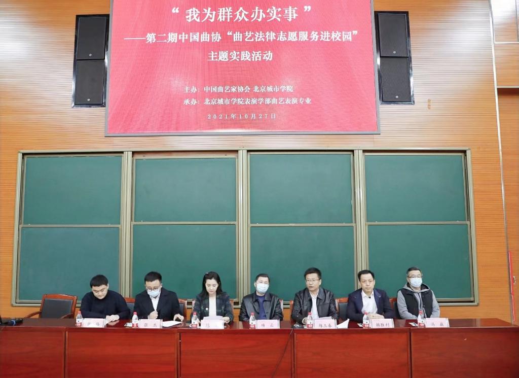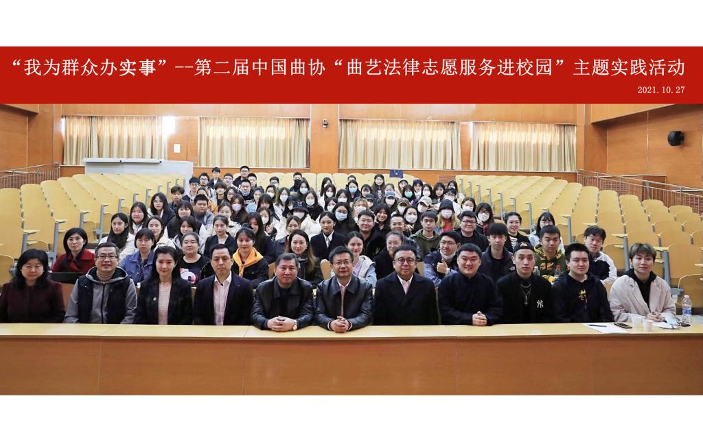 10月27日上午,中国曲艺家协会与我校共同举办“我为群众办实事”——第二届曲协“曲艺法律志愿服务进校园”主题实践活动。中国文联曲艺艺术中心主任项云,中国曲协权保处副处长韩胜利,我校副校长练玉春,中国曲协权保处四级调研员李冰,北京天驰君泰律师事务所合伙人、北京市文化娱乐法学会版权运营与保护法律专业委员会主任张杰,我校表演学部主任陈琳,表演学部曲艺专业主任冯巍,表演学部曲艺专业副主任张伟及曲艺专业70余名学生共同参加。本次活动由陈琳主任主持。