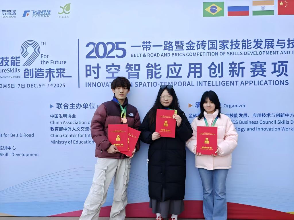 近日,2025一带一路暨金砖国家技能发展与技术创新大赛之时空智能应用创新赛项在石家庄圆满落幕。来自全国多所高校的131支参赛队伍同台竞技,我校城市建设学部地理信息科学专业师生团队,凭借扎实的专业技能和出色的团队协作,荣获多个奖项。