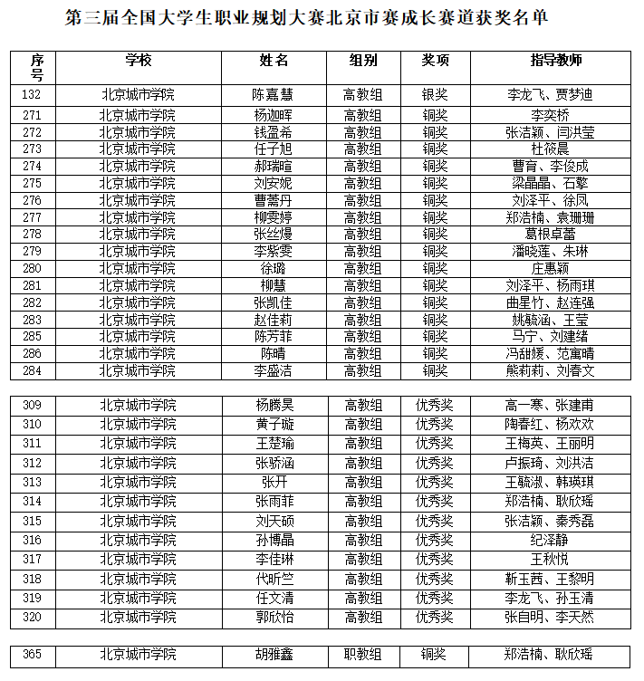 近日,第三届全国大学生职业规划大赛北京市赛圆满落幕。我校在本届大赛中荣获佳绩,共斩获金奖1项、银奖2项、铜奖25项及优秀奖19项,学校荣获“最佳组织奖”。