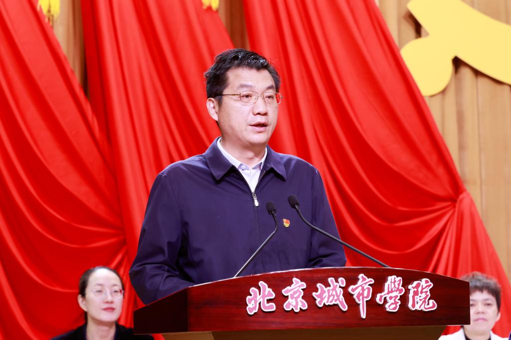 顺义区委常委、组织部部长张仪涛代表顺义区委、区政府,对大会的圆满举行表示热烈祝贺。他首先肯定了学校一直以来为首都和顺义区经济社会发展作出的重要贡献。他希望顺义区与北京城市学院以优势互补、资源共享、互利共赢、创新发展为原则,进一步强化校地合作,深化携手共建,努力在党建工作、干部工作、人才工作、优化环境、服务发展等多个维度实现同频共振。他表示,顺义区将全面加大对学校的支持力度,助力学校早日建成高水平民办大学。