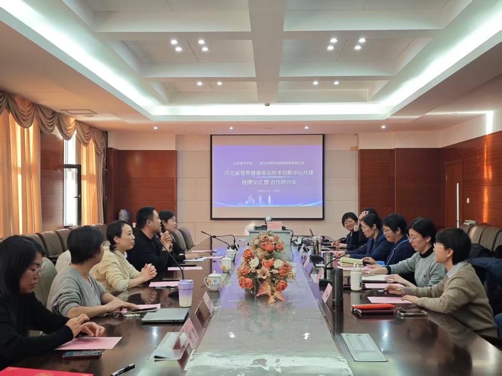 11月27日,河北省科技厅批准成立的省技术创新中心——河北省营养健康食品技术创新中心共建揭牌仪式暨共建推进研讨会在我校航天城校区举行。晨光生物科技集团邯郸有限公司(以下简称晨光生物科技集团)总经理万海超及公司研发团队,我校副校长胡丽琴及科研、教务等部门及生物医药学部负责人、骨干教师参加,校企双方携手开启京津冀营养健康食品领域高水平产教融合、协同创新的新篇章。