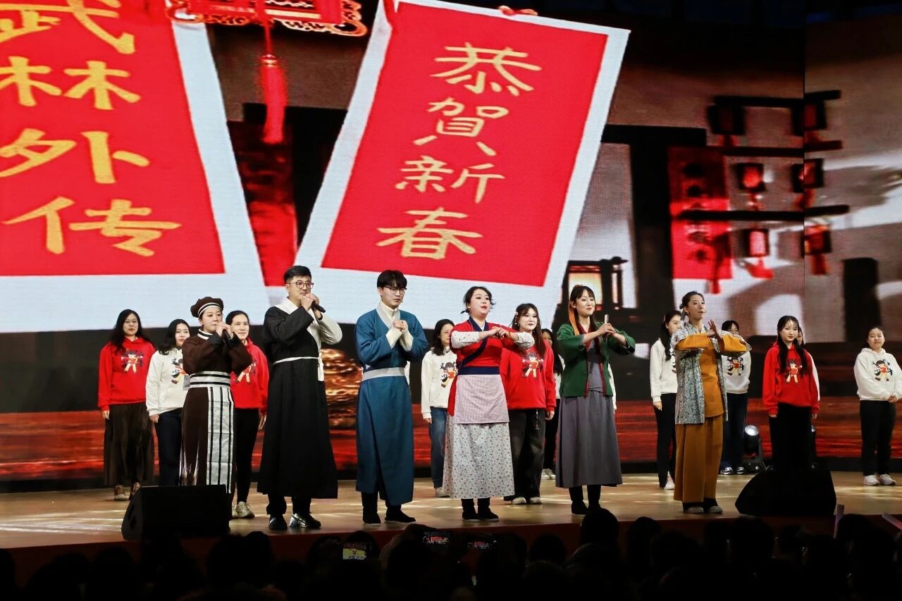 朗诵诉赤子衷肠,歌声唱家国情怀。歌曲《我的祖国》将岁月安然与盛世风华娓娓道来;《策马迎春》以昂扬姿态演绎逐春之乐,用铿锵节拍奏响迎新之章;《武林外转转》在欢声笑语间,亮出文传学部的亮眼成果;《诗画中国》以清雅演绎串联古今,为联欢会添一抹古韵悠长的雅致。