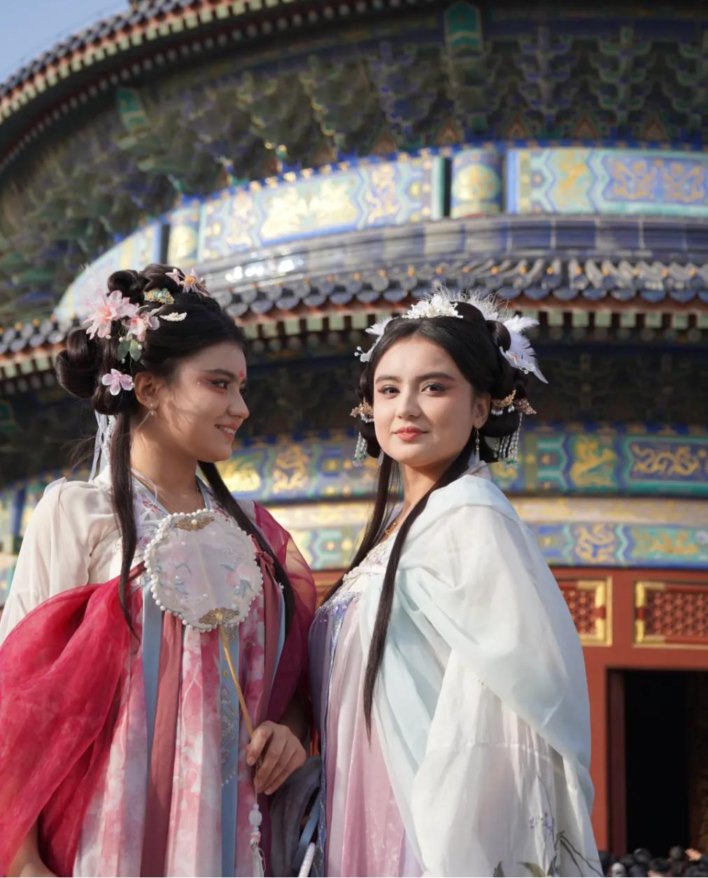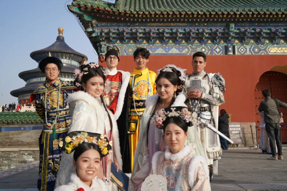 红墙碧瓦下,汉服广袖轻扬。我们漫步天坛,对着斗拱惊叹,听华夏衣冠的故事随翻译流转,镜头里定格的不仅是传统之美,更是跨文化相遇的温暖——让千年文脉,在彼此的注视中鲜活绽放。