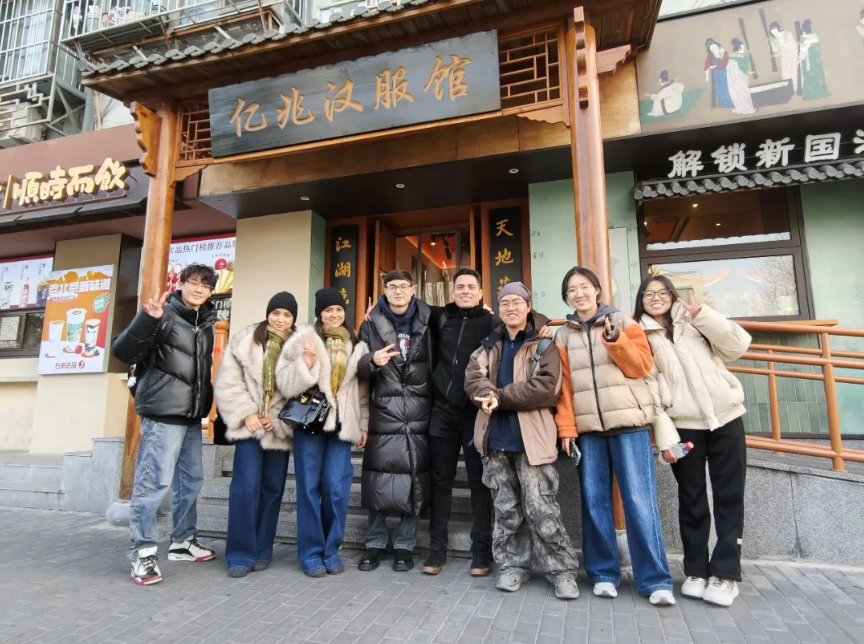 11月29日,8名来自北京城市学院国际文化与传播学部的学生和来自墨西哥、乌兹别克斯坦的留学生一同走进位于北京市东城区天坛公园旁的汉服馆,开展了一场沉浸式汉服文化体验活动。中外学生不仅穿上了精美的汉服,更在行走与交流中,深入感知中华传统服饰背后深厚的文化内涵。