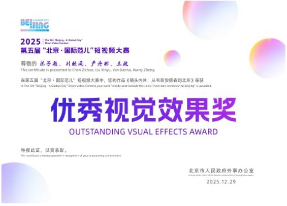 2025年12月29日,第五届“北京·国际范儿”短视频大赛颁奖仪式在中国电影博物馆举行。