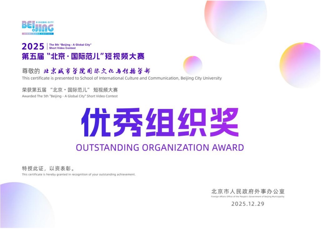 北京城市学院国际文化与传播学部积极组织师生参与“北京·国际范儿”短视频大赛,在往届比赛中曾多次斩获各项大奖。国际文化与传播学部将以此为契机,继续鼓励师生关注并参与北京城市文化国际传播实践,以视听语言展现北京的国际魅力,助力北京城市形象的国际传播。