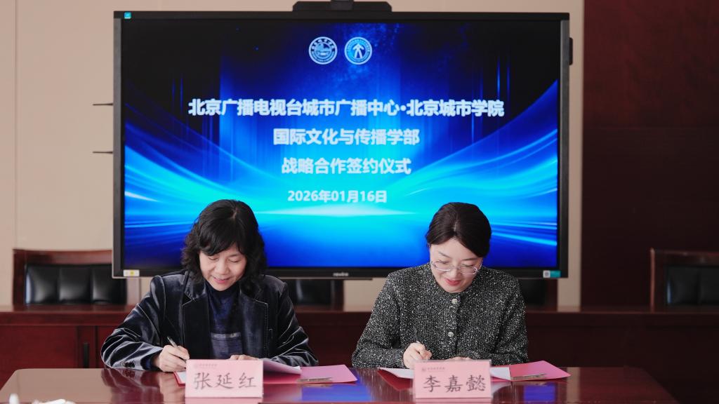 1月16日,北京城市学院国际文化与传播学部与北京广播电视台城市广播中心在中关村校区举行战略合作协议签订仪式。双方围绕项目制教学改革、科研协同创新、产业联盟建设及学生实习实践等议题开展座谈交流,并达成多项合作共识。