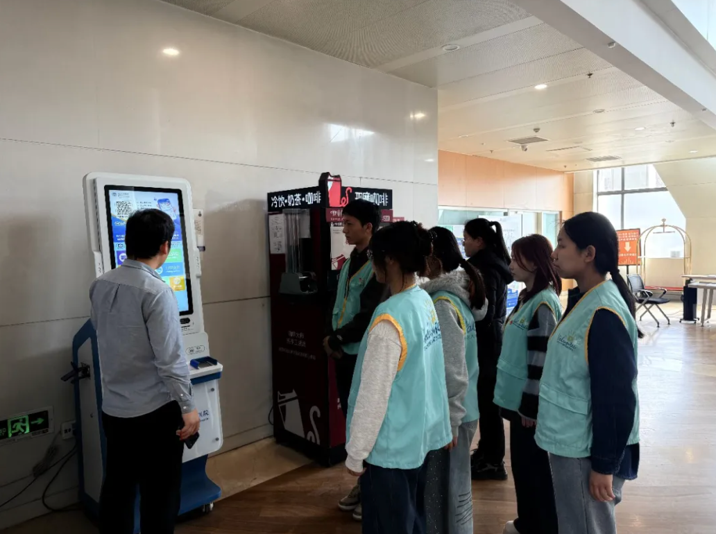 现场志愿服务开展服务现场,志愿者们秉持“耐心、细心、热心”的服务理念,用实际行动传递温暖。在门诊大厅,他们主动为就诊患者指引科室路线、解答疑问;在自助服务区,手把手协助老年患者完成挂号、缴费、打印报告等操作,帮助老年人解决实际难题 ;在候诊区域,贴心帮扶行动不便的特殊群体,用暖心话语舒缓患者焦虑的情绪。我校文传学子以积极的精神风貌与务实贴心的服务态度,赢得了医护人员和就诊患者的一致好评。