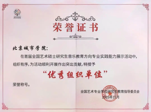 11月6日至7日,首届“全国艺术硕士研究生音乐教育方向专业实践能力展示活动”在吉林省长春市举办。表演学部音乐教育专业2023级研究生侯永琦、王佳雯同学凭借扎实理论知识、出色的实践教学能力,在比赛中表现优异,荣获“入围奖”,与此同时,北京城市学院荣获“优秀组织单位”称号。