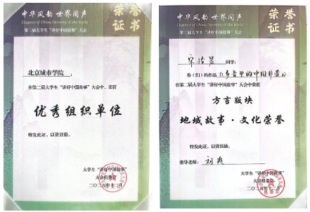 宋怡晨同学的作品聚焦地域文化,以方言为独特载体,生动讲述中国非物质文化遗产的故事,体现北京城市学院播音学子扎实的专业能力与文化自觉。此次获奖,是表演学部“艺文融通、技艺并举”人才培养理念的又一成果展现。