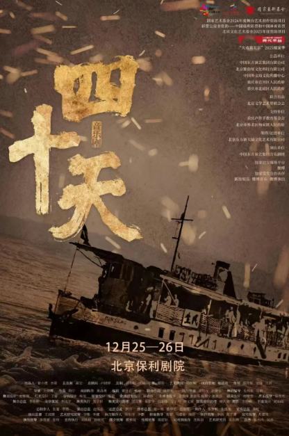 12月25日至26日,为纪念中国人民抗日战争暨世界反法西斯战争胜利80周年,由中国东方演艺集团联合北京紫韵星文化科技有限公司、中国外文局文化传播中心、重庆市合川区人民政府、重庆市北碚区人民政府共同出品,重庆卢作孚基金会、北京市怀柔区杨宋镇人民政府共同支持,北京市文学艺术界联合会联合出品的国家艺术基金2026年度舞台艺术创作、北京文化艺术基金2025年度共同资助项目、2025年度“大戏看北京”文艺创作孵化平台·精品创作项目音乐剧《四十天》在北京保利剧院进行了首演。