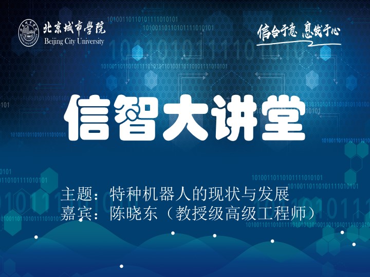 3 月 25 日,信息学部 2026 年度 “信智大讲堂” 首期活动在顺义校区报告厅顺利举办。本次活动特邀陈晓东(教授级高级工程师)作题为《特种机器人的现状与发展》的专题分享,带领在场师生共同领略特种机器人领域的科技魅力与发展前景。信息学部 2024 级、2025 级共 400 余位师生参加本次活动。