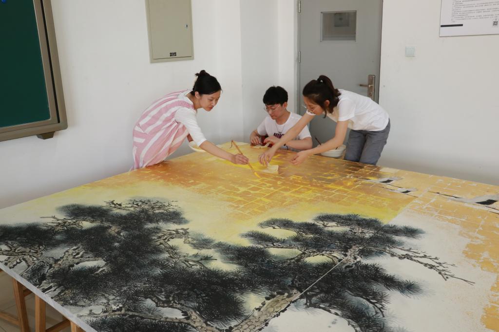 工艺美术系主任陈秋荣教授,及林煜峰教授、李艳梅副教授担任了画作的主创,中国画方向研究生李米青、颜路瑶、乔妞妞、韩玉、曹秀玉,篆刻方向研究生孟令超和文物修复专业方向学生颜祯鑫、孟祥明、管静、张梦桐、鲍羽虹、刁羽、刘星妤、戴泽琳、周璐等作为主创团队成员,全程参与到了绘画的创作与装裱工作中,历时不到一个月完成了该幅画作的制作。画作制作过程也是师生们将专业知识应用到实践创作的过程。