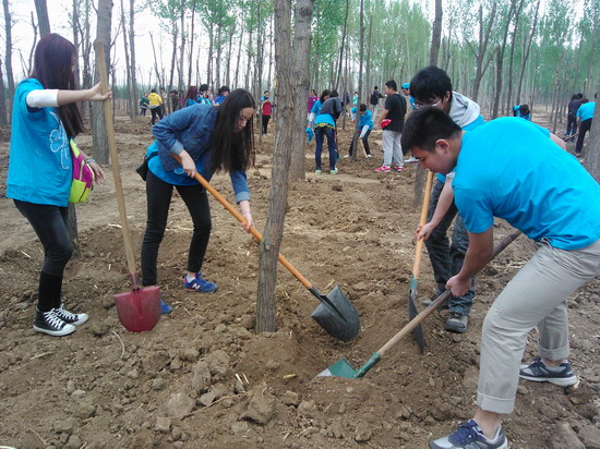 4月11日上午,我校团委书记姜涛等12名团委教师带领来自校本部、航天城、大学城、西红门校区各班级的80余名基层团干部来到顺义区南彩镇,共同参加了义务植树护绿活动,用自己的实际行动倡导和践行“绿色首都 低碳生活”的环保理念。