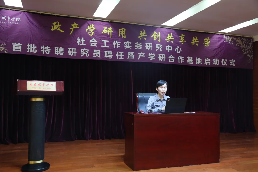 周玲作了《社工实务研究中心产学研发展规划》的主题报告,表示中心将在“发展队伍、交流平台、合作机制、资源拓展、成果共享”五个维度为校友发展提供全面专业与资源支持,致力于北城产学研模式更上一个台阶。