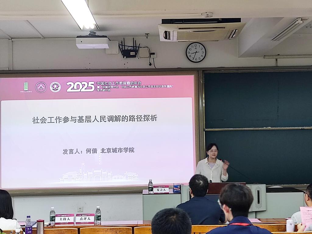 我校公共管理学部副主任何倩副教授从价值契合与法律依据角度,论证了社会工作参与基层调解的可行性。她强调社工可通过赋权增能、系统视角分析矛盾根源,并借助动态协议与持续跟进来提升调解成效,弥补传统调解在情感与心理支持方面的不足。