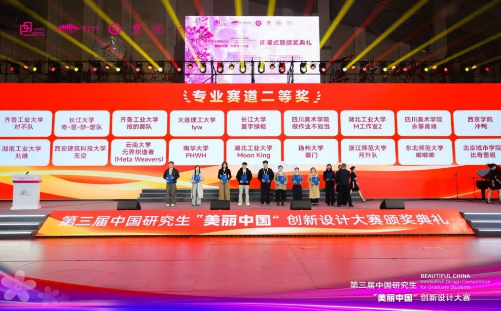 近日,第三届中国研究生 “美丽中国” 创新设计大赛评选结果正式公布。我校研究生团队此次共提交23项参赛作品,覆盖媒体传达设计、服装与服饰设计、环境空间设计、工业产品设计等五大赛道。其中,5件作品从全国7339件作品中脱颖而出,共斩获全国二等奖1项、三等奖4项,充分彰显了我校学子扎实的专业素养与卓越的创新能力,也体现了学校办学育人的丰硕成果。获奖名单如下: