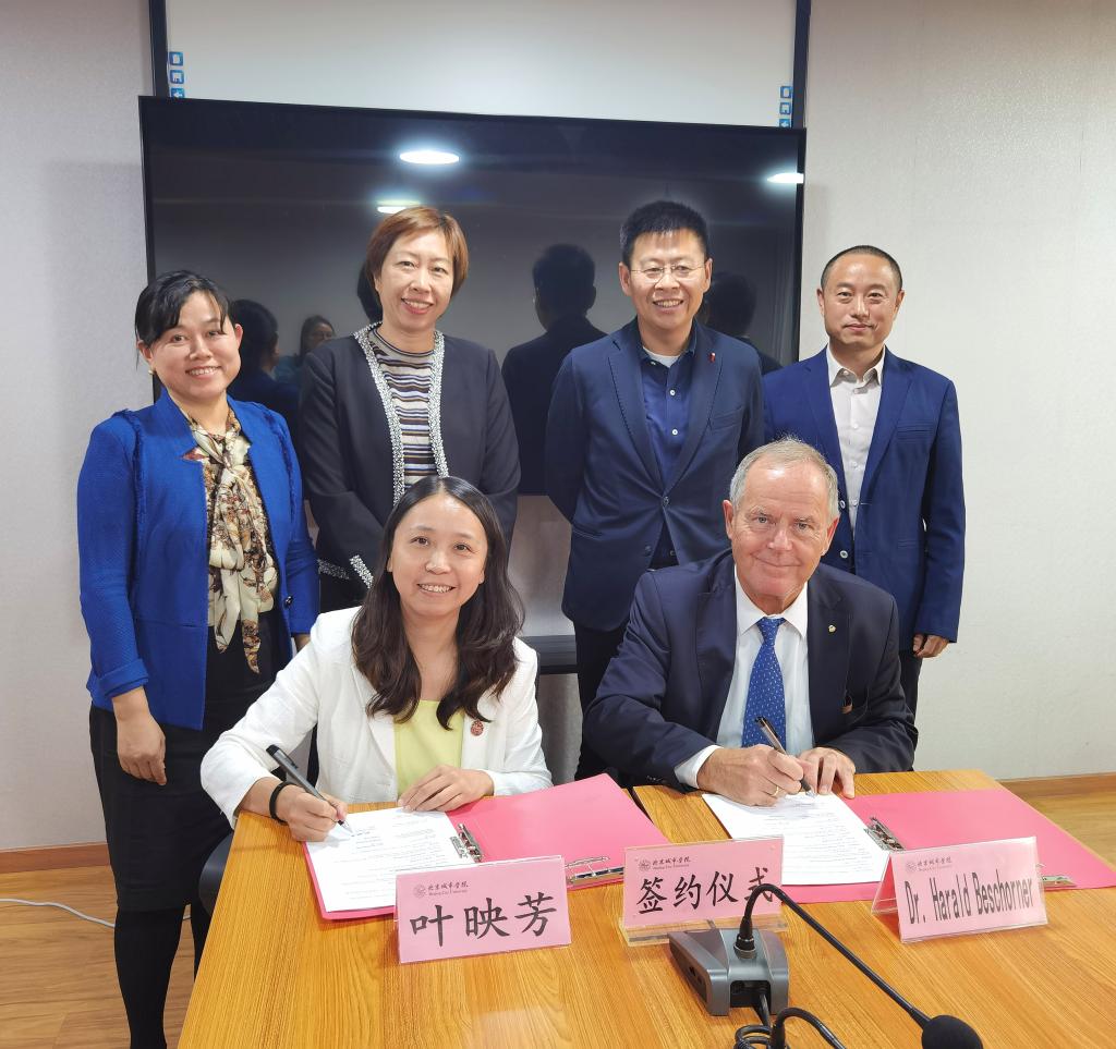 10月13日,我校与德国埃森经济管理应用技术大学(FOM)签署战略合作补充协议并成功举办德语(商务经济中德实验班)中外师生见面会。合作协议由FOM大学校长Harald Beschorner与我校党委副书记叶映芳共同签署,标志着两校在友好合作十余年基础上迈入崭新阶段,双方将在人才培养、教师科研等方面开展全方位合作,为中德经贸合作培养更多精通德语、深谙商务的复合型人才。