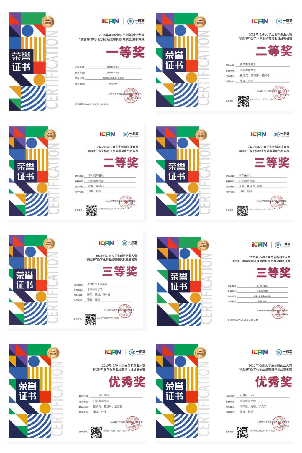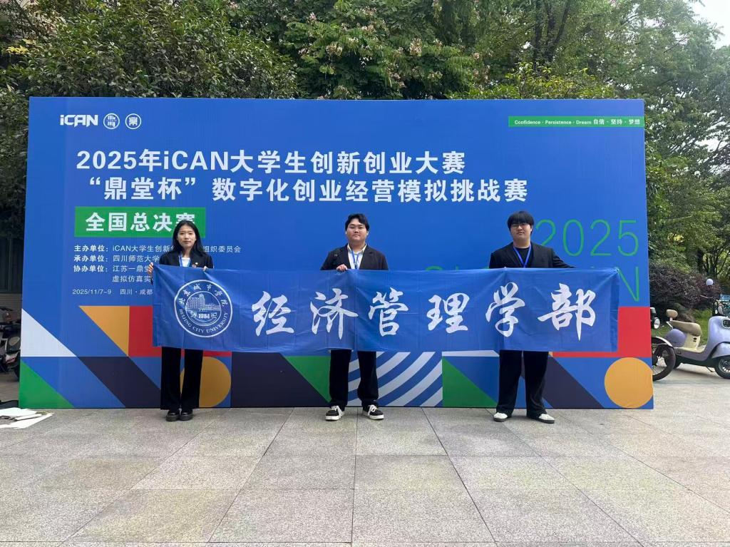 12月15日,2025年iCAN大学生创新创业大赛“鼎堂杯”数字化创业经营模拟挑战赛全国总决赛颁奖仪式圆满落幕。历经8个月四轮角逐,我校经济管理学部师生团队从全国200余所高校的1200余支队伍中脱颖而出,斩获全国总决赛一等奖1项、三等奖1项,省赛二等奖2项、三等奖2项、优秀奖2项。其中,杨继民、任和涛、侯婧婧团队凭借差异化竞争策略与高效运营管理,获全国总决赛一等奖,赵晶、李娅菲团队打造“线上跨境+线下体验”创新模式,获全国总决赛三等奖。指导教师张诚、林琛获评“优秀指导教师”。