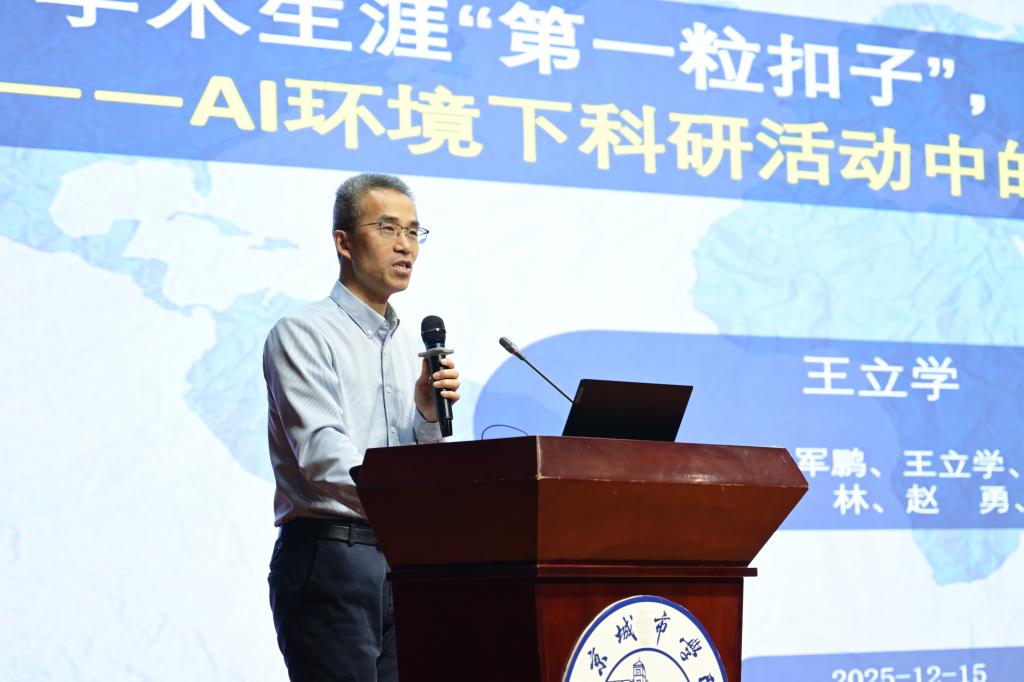王立学副研究馆员围绕“系好学术生涯‘第一粒扣子’,开展负责任科学研究——AI环境下科研活动中的规范与警示案例”主题,详细介绍了学术不端行为的类型、AI相关的学术不端案例、负责任研究的做法等方面的经验,为教师和研究生提供了明确的学术规范指引和行动参考。