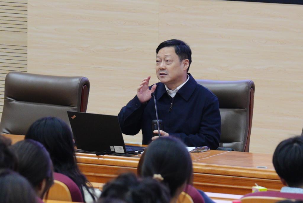 本次宣讲会特邀中国人民大学马克思主义学院、纪检监察学院吴玉章高级讲席教授、博士生导师何虎生担任主讲。他以“抗日战争与中华民族的重塑”为主题,为在场师生带来一场深刻而生动的党史国情教育课。讲座由我校学工委书记杨璐主持。