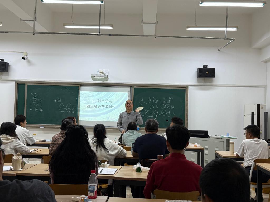 研培项目负责人、我校文化遗产学部主任陈秋荣教授讲授的“漆玉融合艺术创作”课程作为研修班开班第一课,该课程旨在打破工艺门类壁垒,引导学员探索大漆的温润深邃与玉石的通透坚毅之美。在陈秋荣教授的指导下,学员们学习如何将髹饰、镶嵌、雕刻等技法与两种古老材质巧妙结合,实现两种东方经典材质的对话与共生,创作出兼具东方韵味与现代审美的独特艺术品。