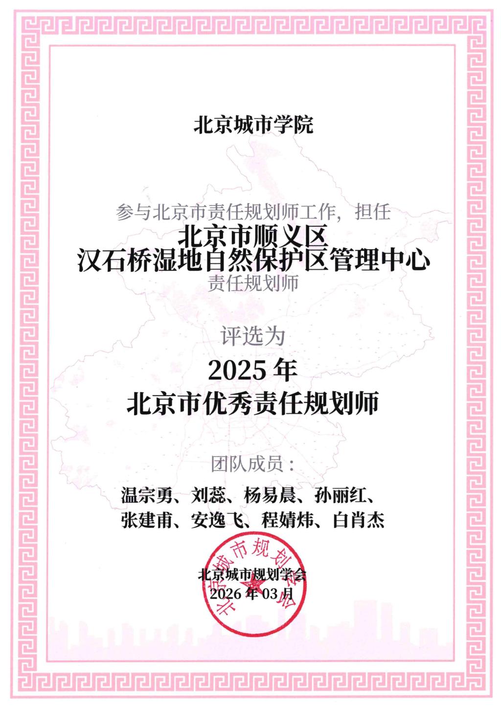 此次获奖,是对我校汉石桥湿地责任规划师团队多年深耕湿地生态保护、持续服务首都生态文明建设的高度肯定。未来,团队将以此为新起点,持续发挥专业优势,凝聚北城智慧,不断深化责任规划师工作实效,为汉石桥湿地科学保护、生态提质与可持续发展贡献更大力量。