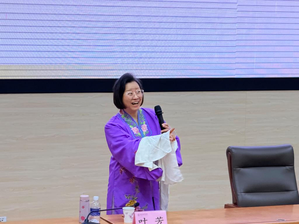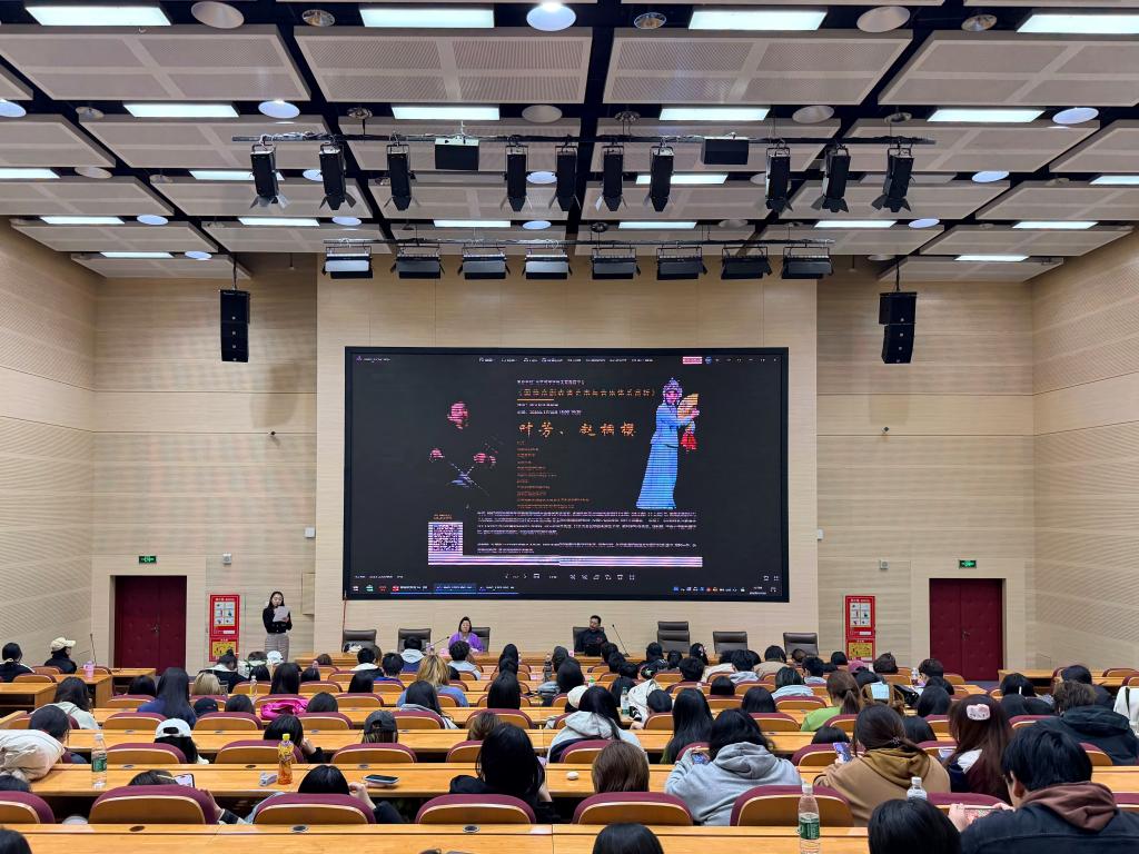 讲座上,赵桐樱老师生动讲解京剧集歌舞、故事、美术于一体的综合艺术魅力,解读其以精湛技艺演绎历史故事的艺术特点。叶芳老师结合实例与演示,细致介绍京剧综合性、虚拟性、程式性三大特性,拆解表演精髓与艺术规范。两位老师还带领师生赏析经典剧目唱段,借助图文视频展现京剧艺术家风采,让大家直观体会唱腔与表演的精妙之处。讲座尾声,叶芳和赵桐樱老师现场演绎经典剧目片段,将现场氛围推向高潮。