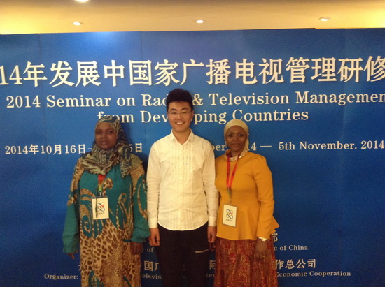 2014年10月中旬至11月上旬,语言学部北城翻译工作室英语专业张少强、乔羽两位同学顺利完成了由中国商务部主办、中国广播电视国际技术合作总公司承办的“2014年发展中国家广播电视管理研修班”为期20天的陪同翻译实习任务。实习期间,两名学生承担了研修班的文案翻译工作、后期各地参观讲解以及日常生活陪同翻译的工作。