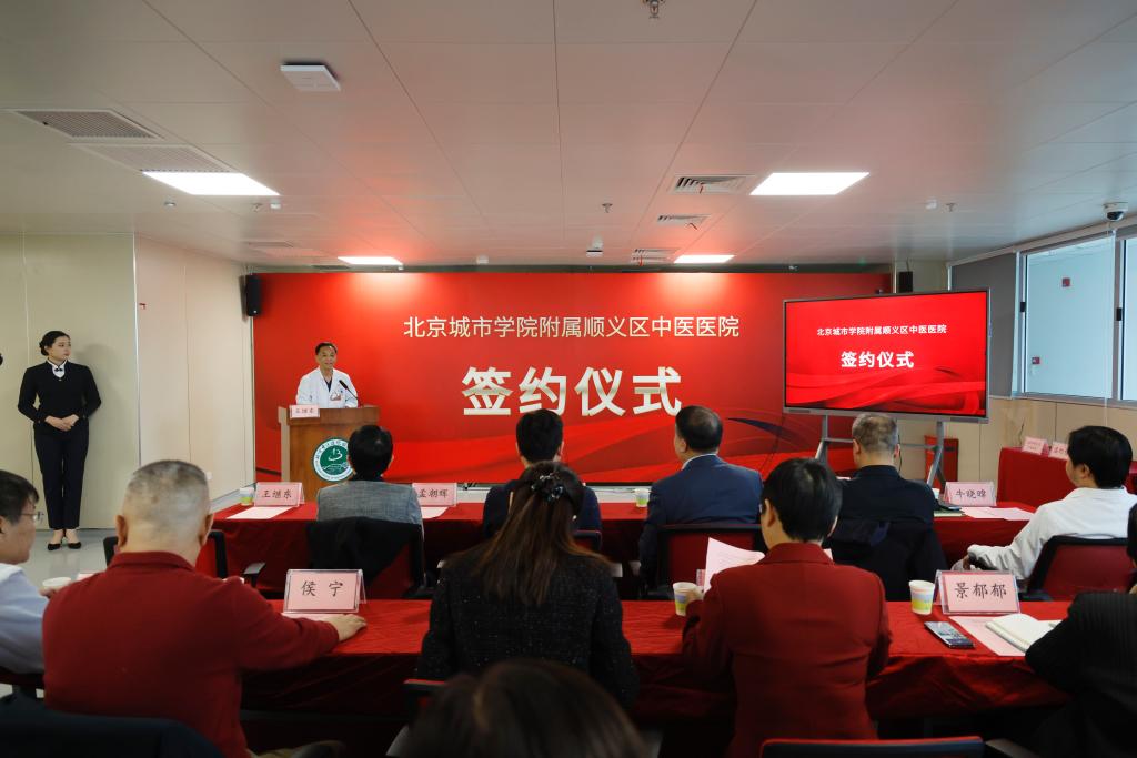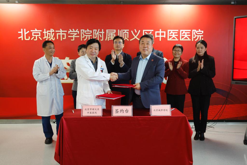 随后,刘林与牛晓暐共同签署附属医院合作共建协议,明确了双方在人才培养、学科建设、科研创新、社会服务等方面的合作内容与发展目标。在全场嘉宾的见证下,双方领导共同为“北京城市学院附属顺义区中医医院”揭牌。