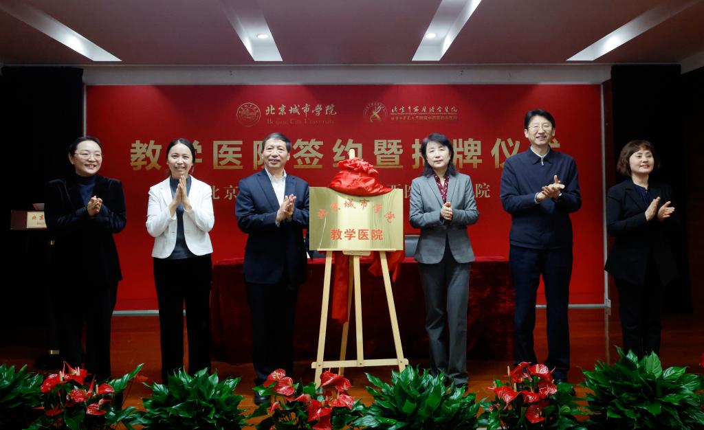 随后,袁佳与韩永鹏共同签署了教学医院合作协议,林航与郭广生为“北京城市学院-北京中西医结合医院教学医院”揭牌,标志着我校与北京中西医结合医院正式建立稳定深度的合作关系。