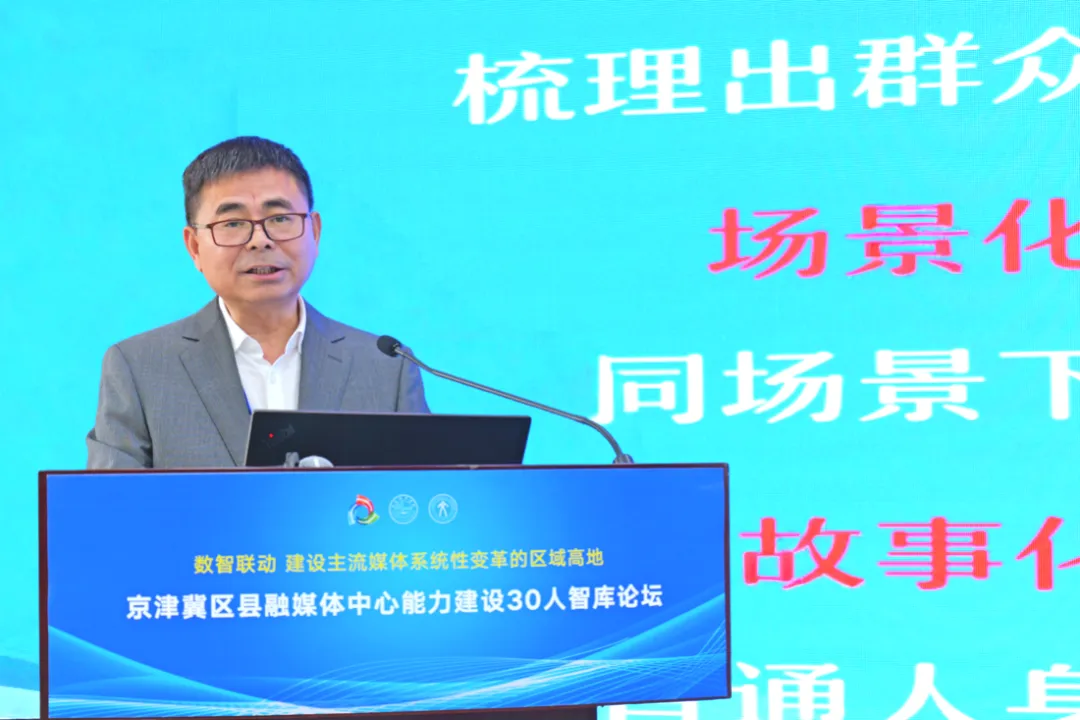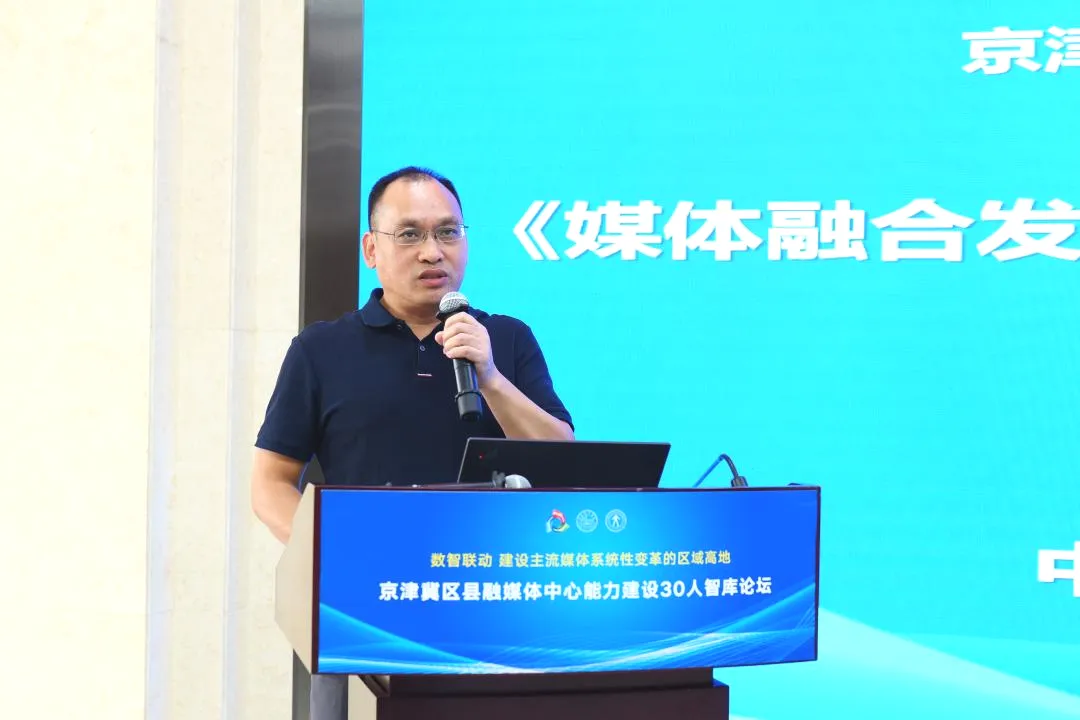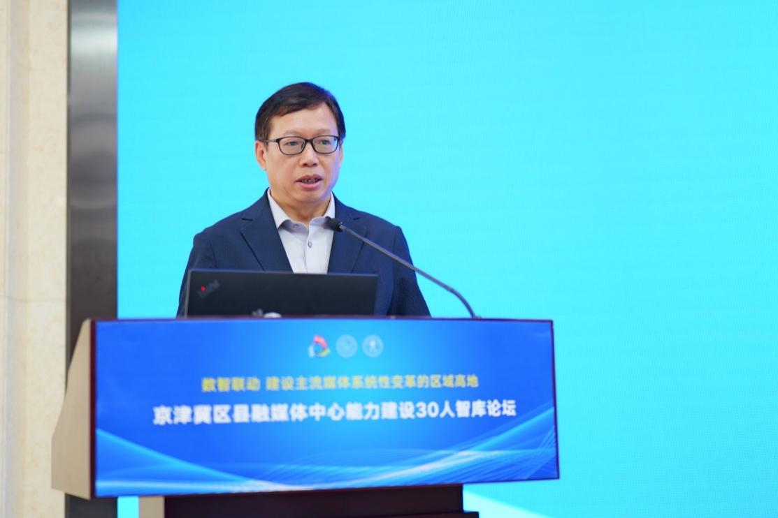 中国新闻出版研究院副院长崔海教首先作题为《京津冀区县融媒体中心能力建设研究报告》的演讲。他指出,京津冀区县融媒体应从协同机制、内容生态、营收体系、人才建设、服务能力以及地方国际传播等方面持续提升相关能力。