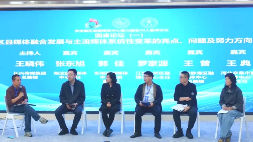 圆桌论坛环节,两场以“区县媒体融合发展与主流媒体系统性变革的亮点、问题及努力方向”为主题的对话交流,汇聚了来自全国10余位区县融媒体中心一线负责人与业务骨干,以开放互动的形式展开深入探讨。长兴传媒集团总编辑王晓伟、北京城市学院数智传播研究院副院长范松楠分别主持了两场论坛。