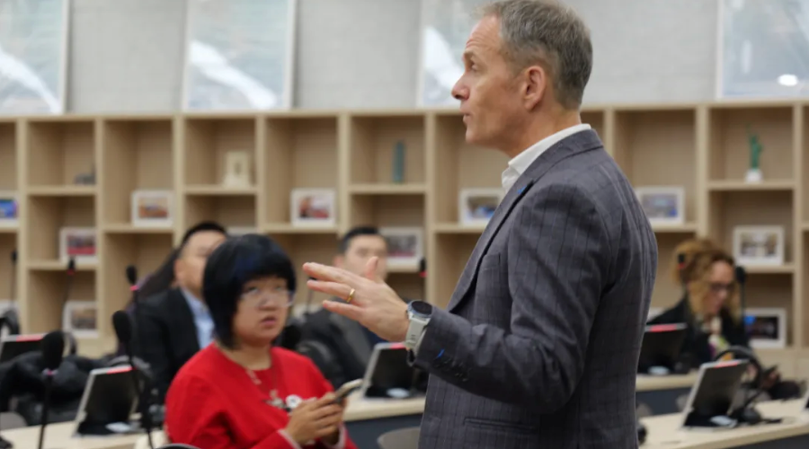 Peter Andrew为北京城市学院2024级会计学(国际课程班)、金融学(国际课程班)学生代表带来了一场主题为“数字颠覆和人工智能”的互动大师课。他为学生们深入剖析了数字时代下企业面临的挑战与机遇,并特别探讨了人工智能对传统行业的深刻影响,展示了赫尔大学商学院独特的“真实商业学习”教学法。还针对人工智能对自身专业领域的影响、赫尔大学课堂学习技巧、海外升学规划等学生关切问题进行细致解答,现场氛围热烈融洽。