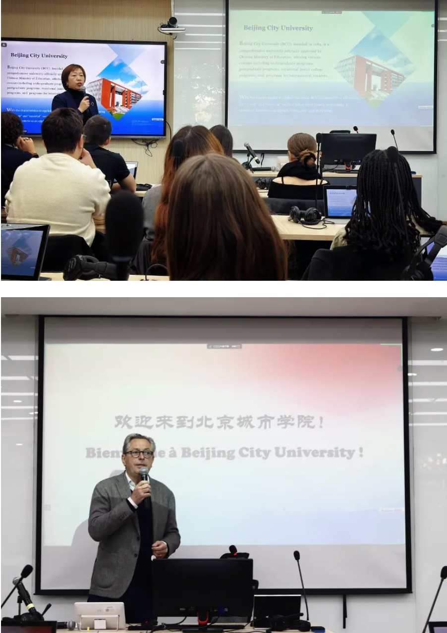 张心远代表学校向法国师生表示热烈欢迎,并详细介绍了北京城市学院的专业设置及与多所国外高校开展的交流与合作成果。她表示,期待以此次访问为契机,双方能够进一步拓展在人才培养与学术互动方面的合作空间。法国代表团对北京城市学院的热情接待表示感谢,并对两校未来的深度合作表达了期待。