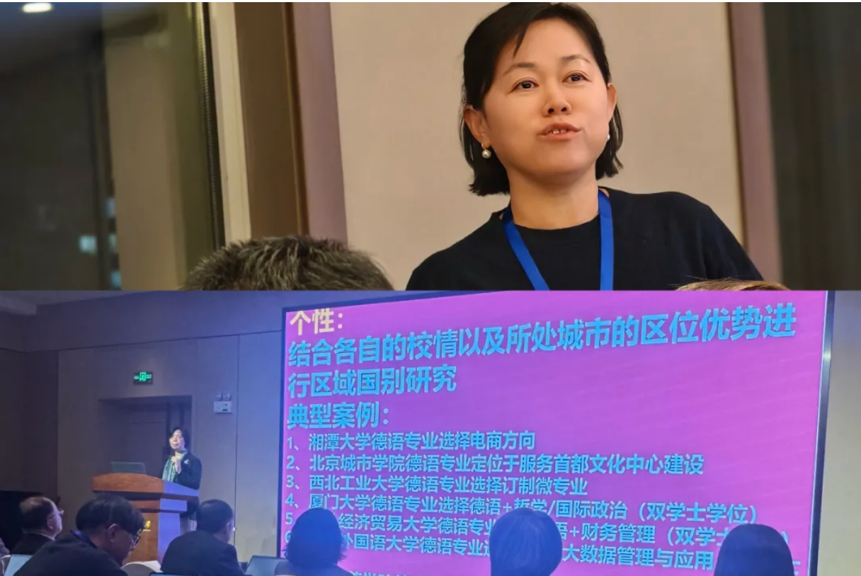 11月28日,北京城市学院国际文化与传播学部德语专业教研室主任刘莉参加2025年全国德语专业年会,并在题为“区域国别研究推动德语专业自主知识体系创新”的分论坛中,详细介绍了北京城市学院国际文化与传播学部德语专业紧密结合学校自身定位与北京城市发展战略,在服务北京全国文化中心建设方面的具体实践与探索。与会专家与同行对北京城市学院国际文化与传播学部德语专业坚持差异化发展,聚焦“北京文化国际传播”这一细分领域进行改革探索并形成的鲜明特色给予了高度评价,认为其为同类院校的德语专业建设提供了有价值的参考。