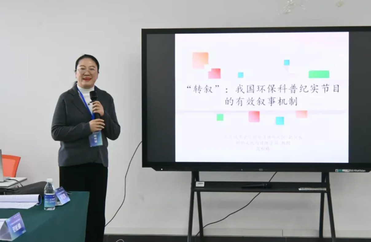 在“纪录片叙事与文化表达”分论坛中,范松楠发表了题为《“转叙”:我国环保科普纪实节目的有效叙事机制》的学术报告。范松楠从叙事理论出发,结合具体案例,系统阐释了环保科普类纪实节目如何通过“转叙”手法,有效构建叙事张力、提升传播效果,从而推动生态文明理念的公众认知与认同,其独到的观点引发了与会者的热烈讨论。