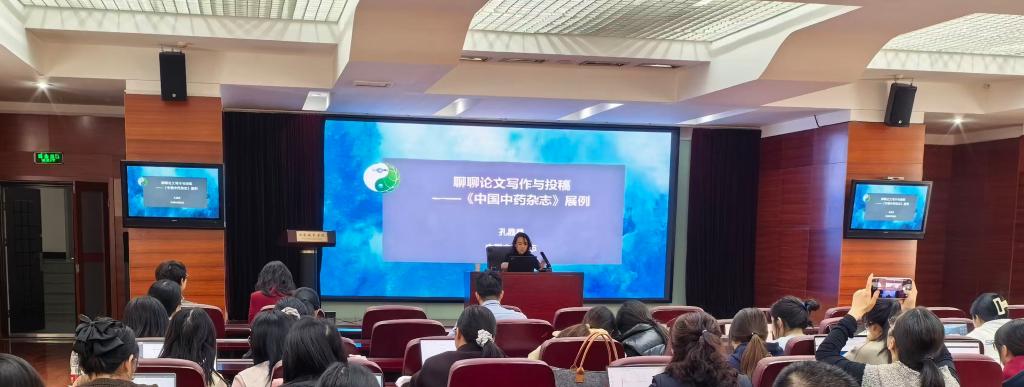 孔晶晶编审首先简要介绍了《中国中药杂志》的办刊宗旨、栏目设置、学术影响力及审稿流程,接着重点剖析了论文撰写与投稿过程中的常见“陷阱”及规避方法,并强调,投稿需确保研究领域与期刊收稿方向精准匹配;实验设计应遵循科学性原则,保证数据可重复、逻辑严谨;研究内容须具备创新性,既可在方法学上突破,也可在材料应用上探索新路径。同时,论文版式严格符合撰写规范,要合理、审慎地使用人工智能辅助工具,避免因滥用AI导致的学术不端风险。讲解中孔老师结合具体案例,生动展示了常见失误及正确做法,令在场学生深受启发。最后,她凝练出合格科研论文应具备的三大核心要素--明确的科学问题、严谨的逻辑链条、规范的学术表达,为研究生开展高质量与研究论文撰写提供了清晰指引。