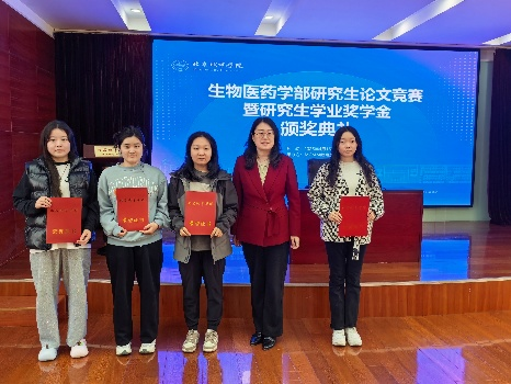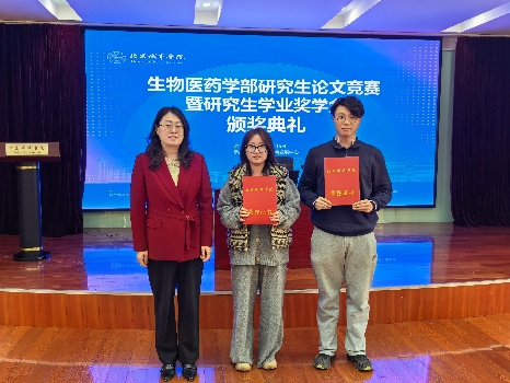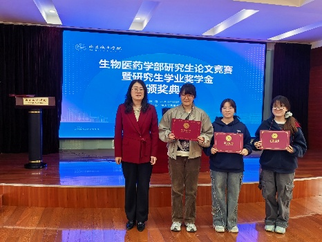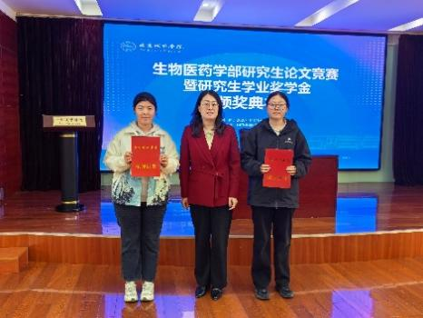 讲座结束后,举行了中药专硕研究生论文竞赛暨研究生学业奖学金颁奖典礼。学位点负责人杨春梅详细介绍了论文竞赛的评审规则与流程,确保评审过程的公平、公正、公开。随后,由生物医药学部王辉主任为获奖同学逐一颁发荣誉证书。