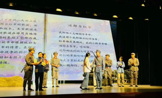 近日,一场别开生面、感人至深的音乐党课——《歌声中的大别山》在中国人民革命军事博物馆上演。本次活动由河南大别山干部学院主办,北京城市学院表演学部受邀倾情助演。由2023影表本2班、2024影表本3班以及2024音乐本班同学们组成的助演团队,将课堂所学与实践相结合,成功为来自各界的观众呈现了一堂“行走的”思政课,用青春之声致敬革命先辈,传承红色基因。