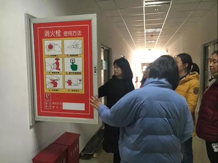 随后,全体教职工分为四组,在各自组长带领下分别针对3号、4号实训楼的教学区、公共走廊、实验实训室及办公室等不同区域、不同情境进行消防分组演练。各个小组组长对所在区域的消防器械的作用、标志的辨识、灭火器的不同使用方法、火灾发生后的应急措施、报警步骤、师生疏散、逃生方法等安全知识对演练教师进行了细致的讲解。通过此次消防安全知识培训及逃生演练,使广大师生们学会了遇到火灾会报警、会逃生自救及如何预防火灾的本领。